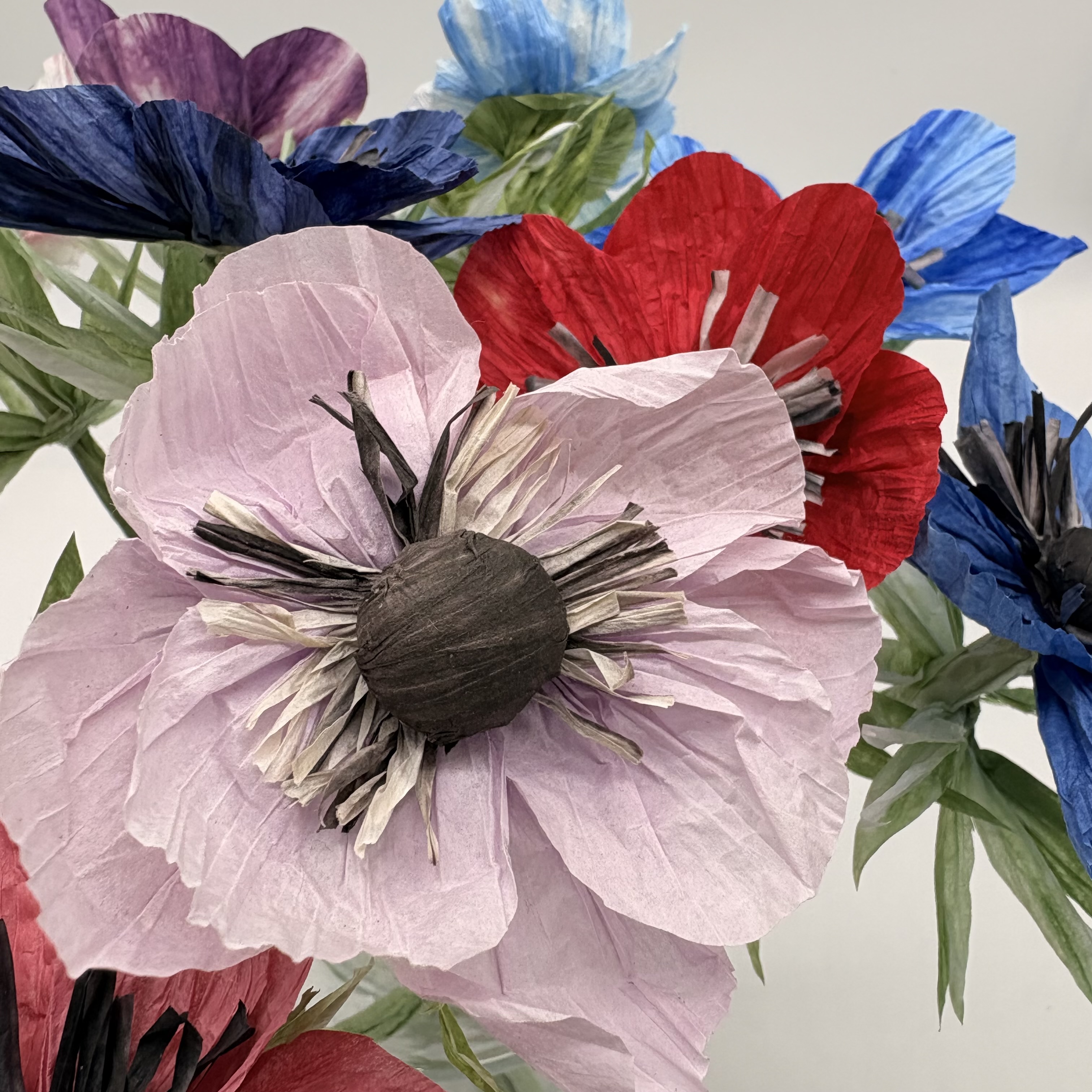 Handgearbeitete Anemonenblüten in vielen Farben - auf Wunsch sind auch andere Farben als abgebildet möglich, aber diese hier sind halt "anemonentypisch".