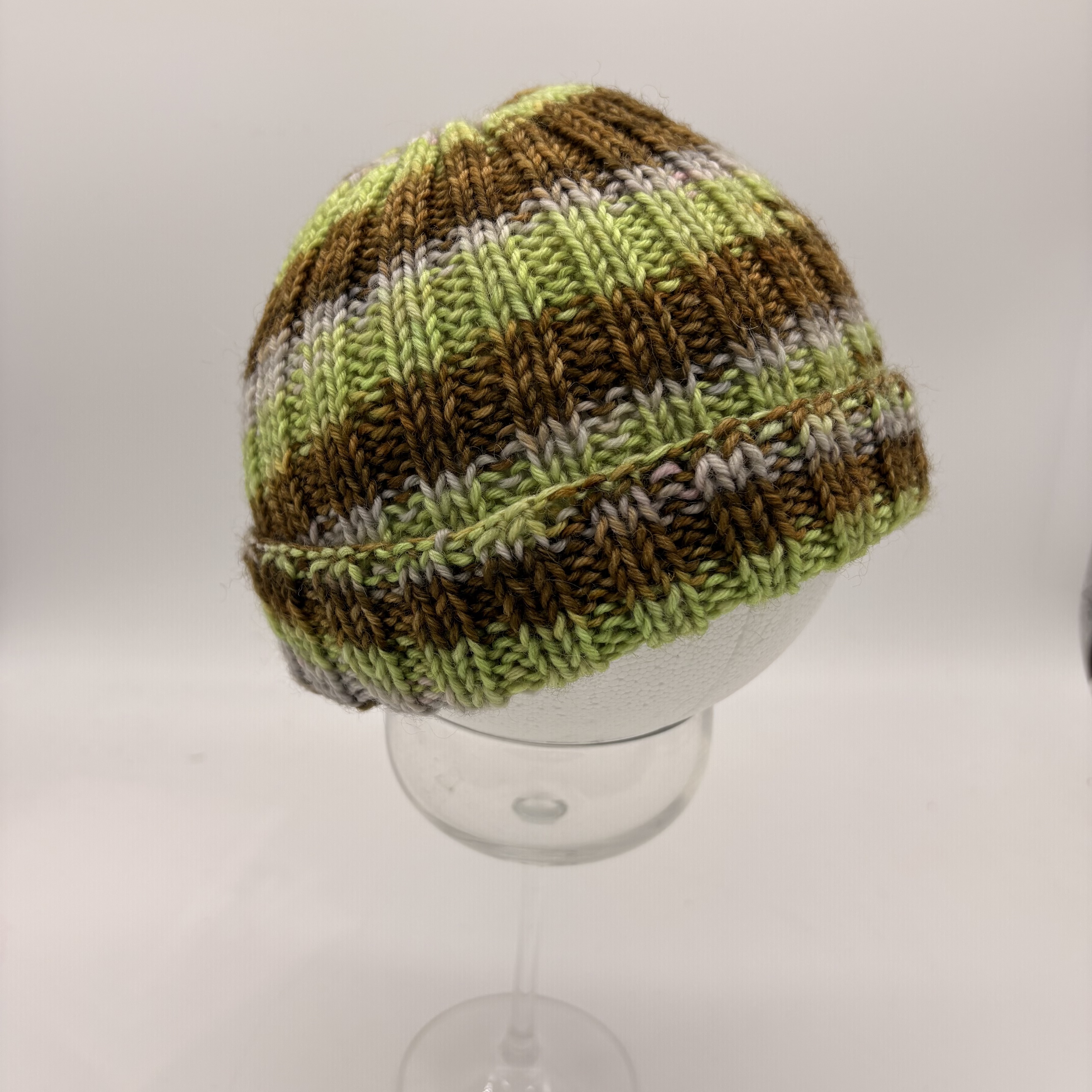 Mütze aus 6-facher Sockenwolle, schön warm und kuschelig. Die Wolle ist von mir liebevoll handgefärbt mit Säurefarben.
