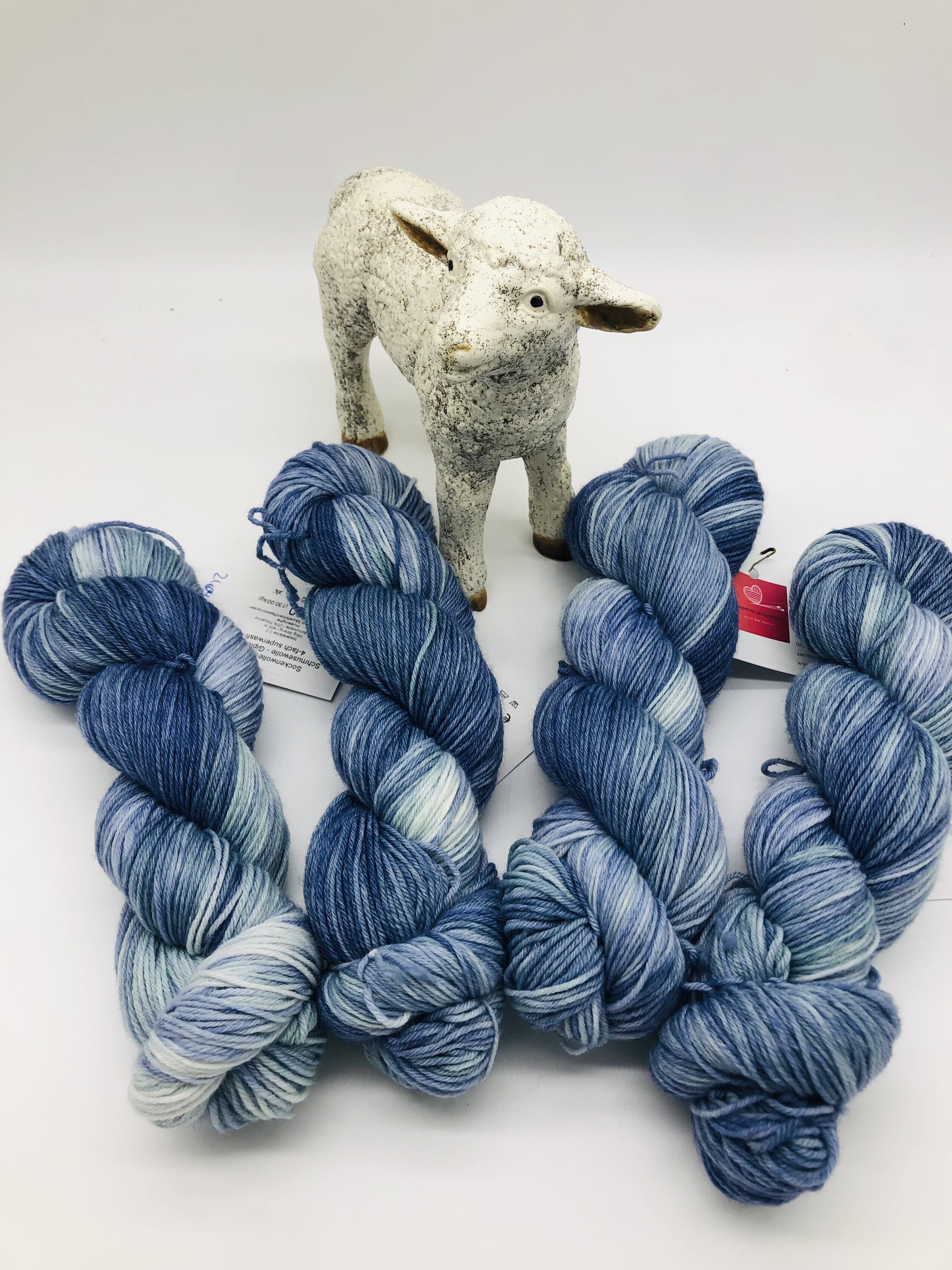 Sockenwolle 4-fach 100g - blau - Merino handgefärbt - hightwisted