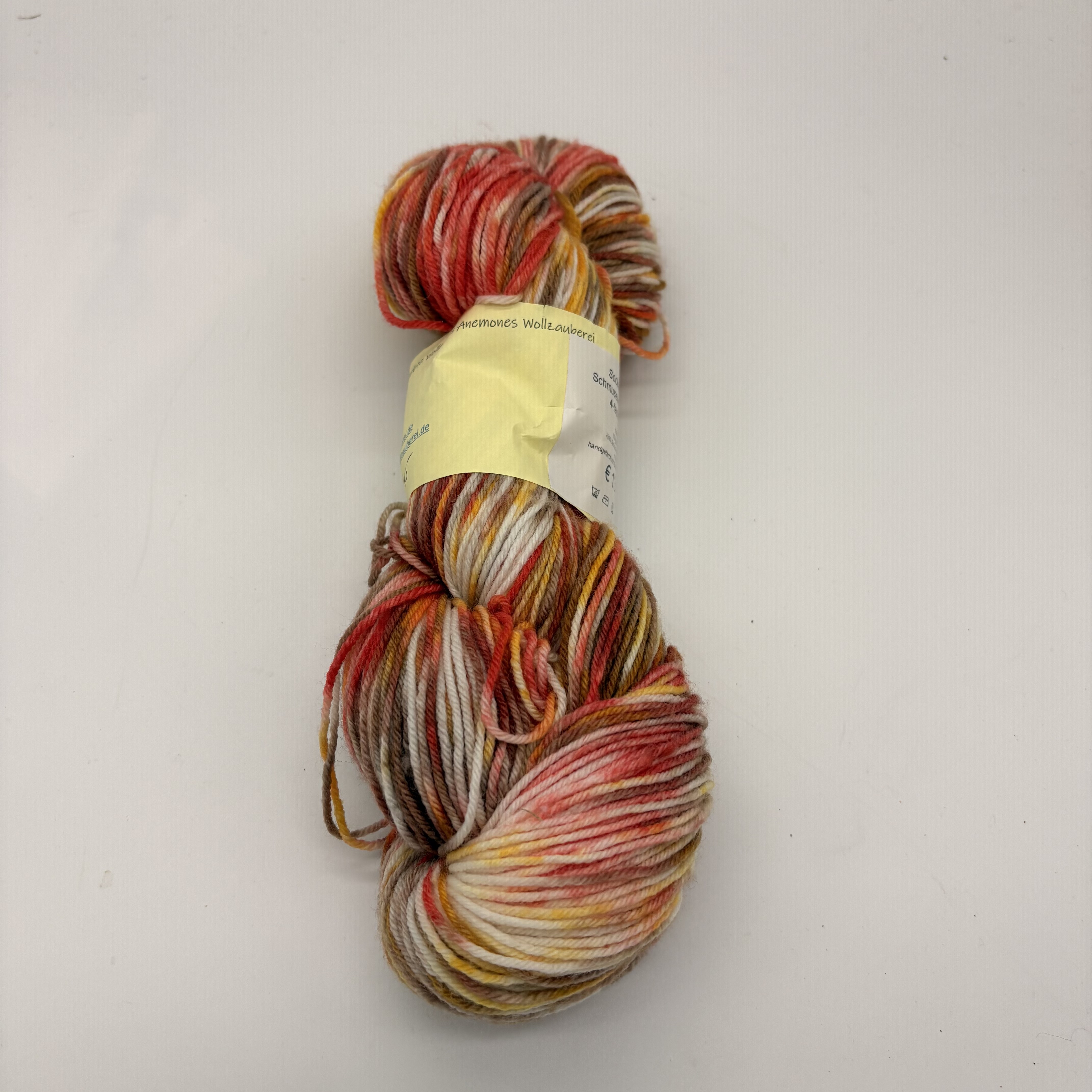 Sockenwolle 4-fach 100g -braun-rot-gelb-weiß - Merino handgefärbt - hightwisted