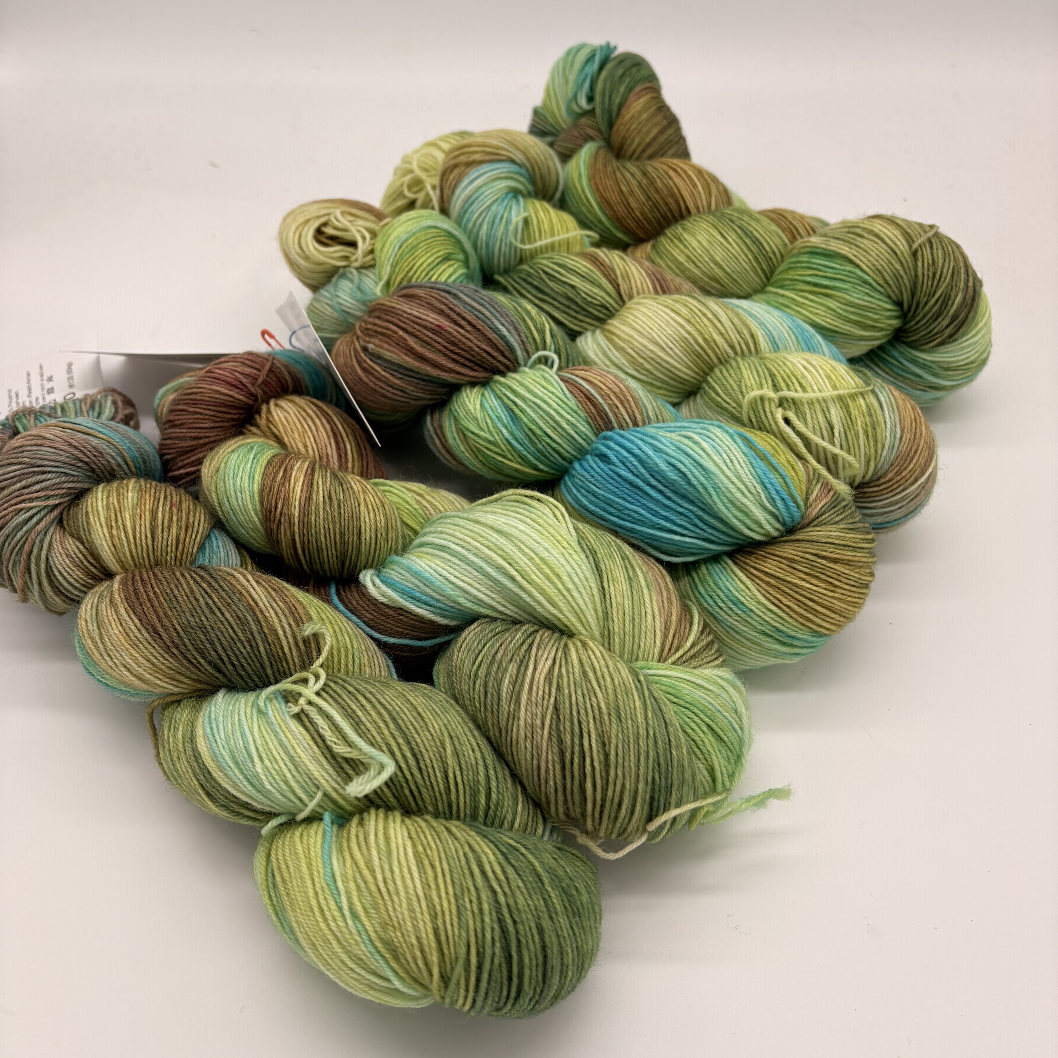 Sockenwolle 4-fach 100g - grün-türkis-braun