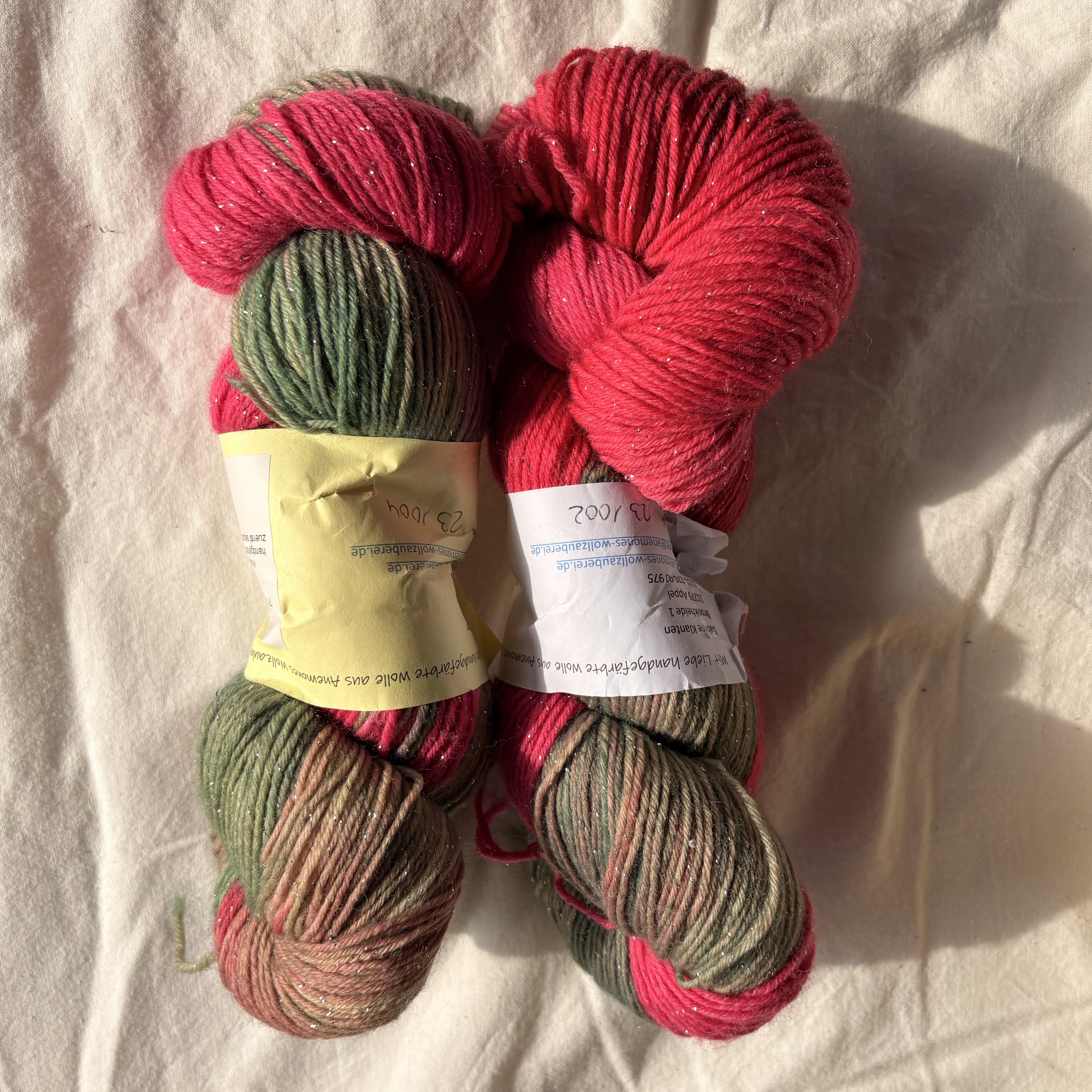 Sockenwolle 6-fach 150g mit Glitzer - pink-grün