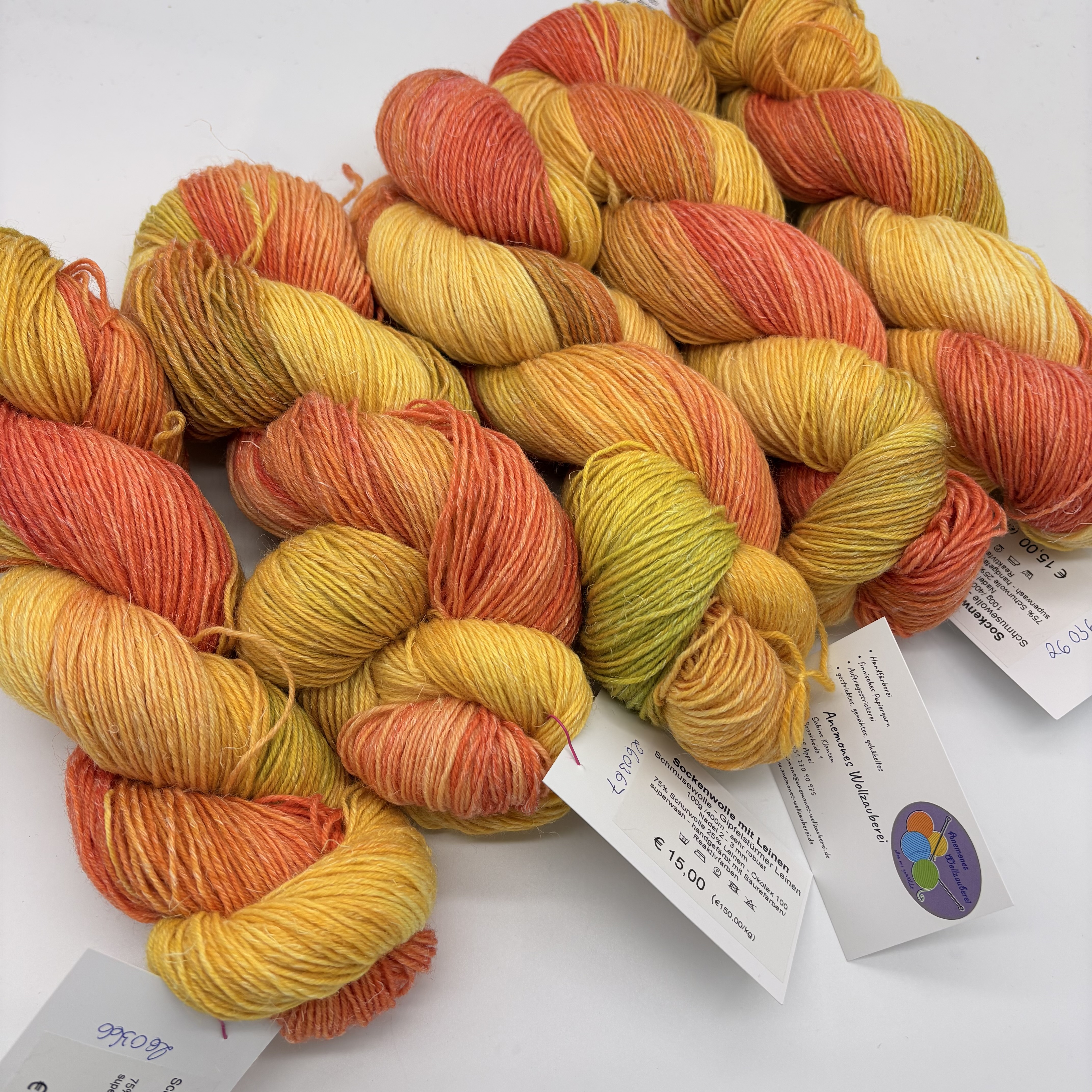 Sockenwolle mit Leinen handgefärbt