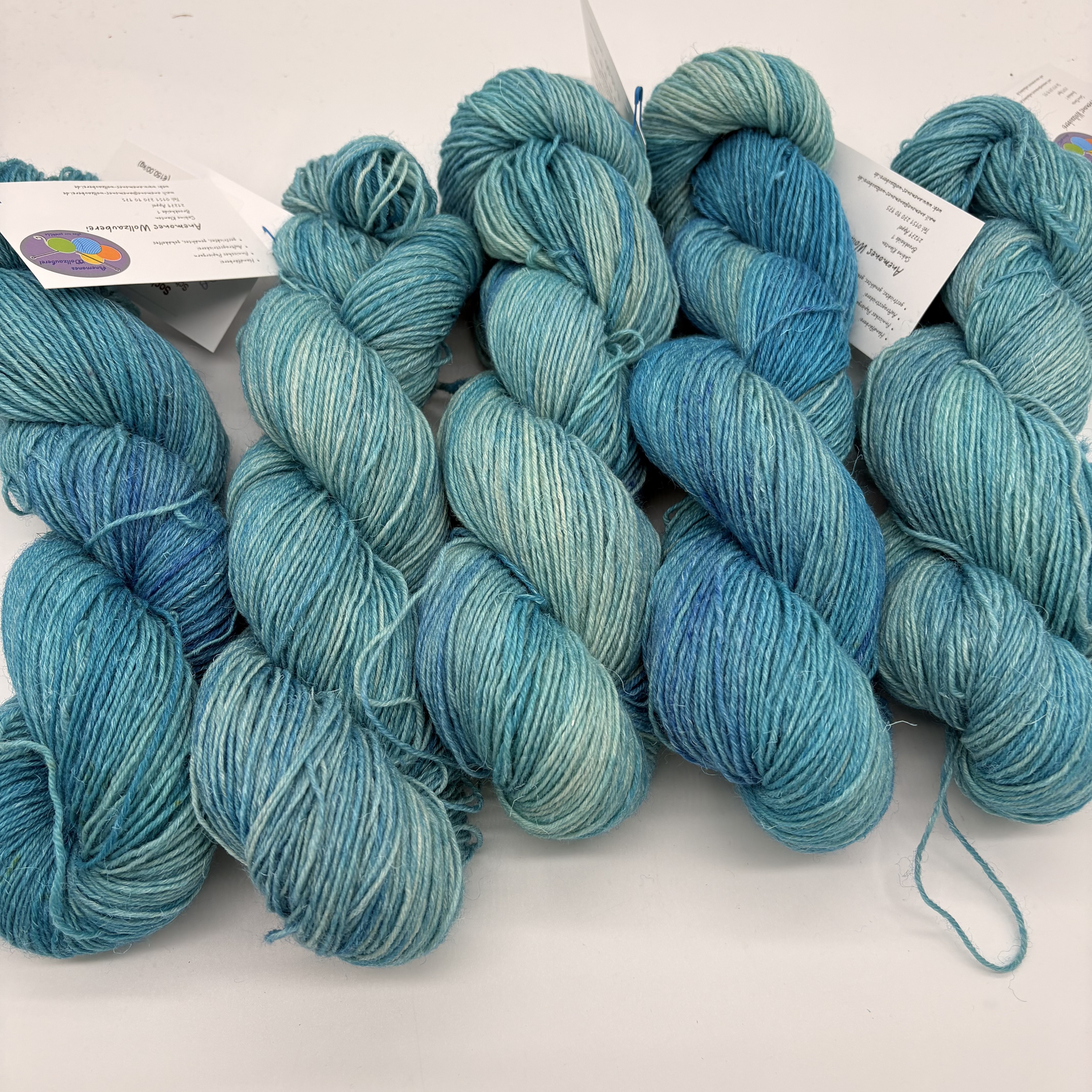 Bitte beachten: trotz sorgfältigem Spülen und Fixieren kann das Garn noch ausbluten. Ich empfehle daher, zum Testen die erste Wäsche als Handwäsche durchzuführen. Sollte es noch zu Ausblutungen kommen, kann eine Spülung mit Essigwasser oder die Verwendung von Farbfangtüchern helfen.