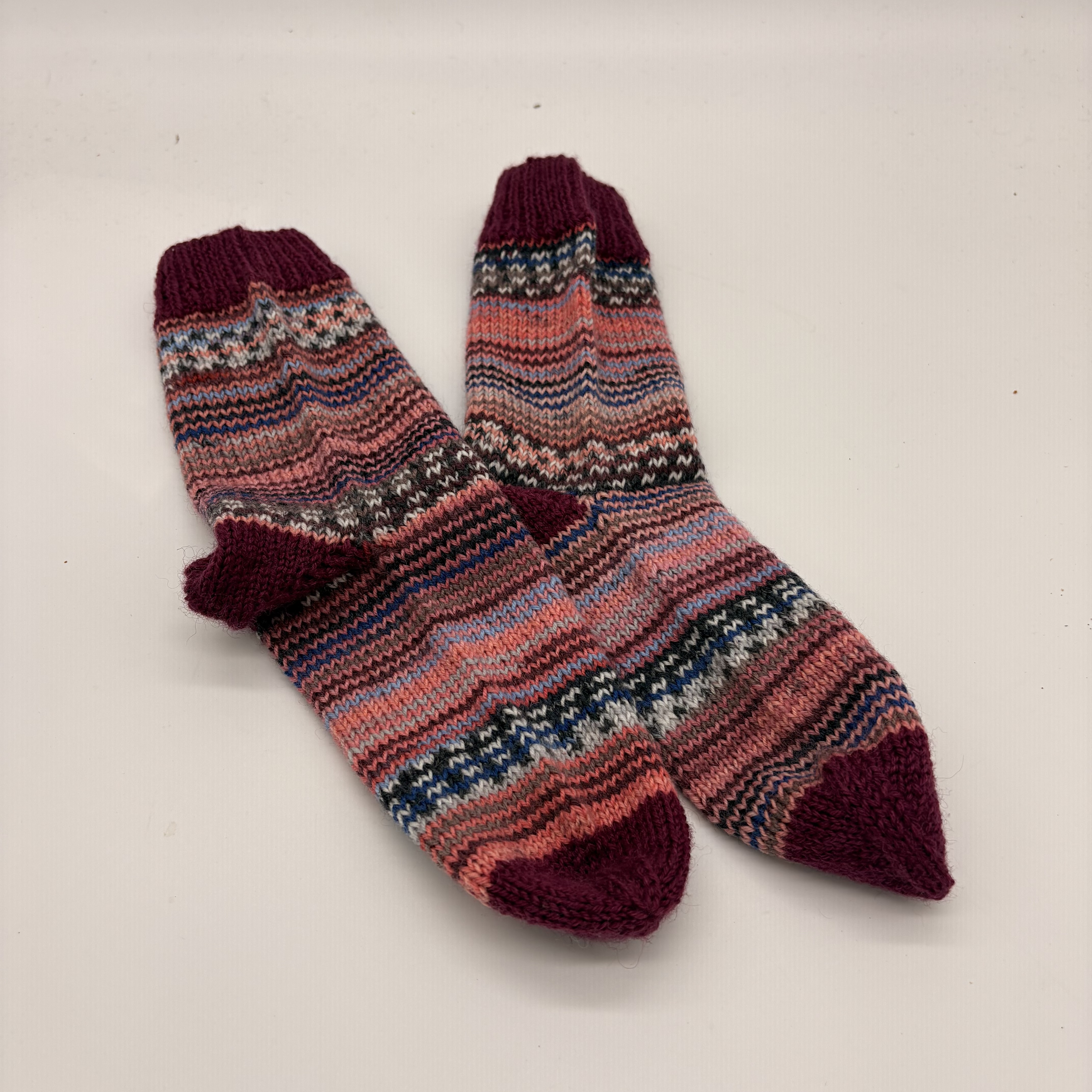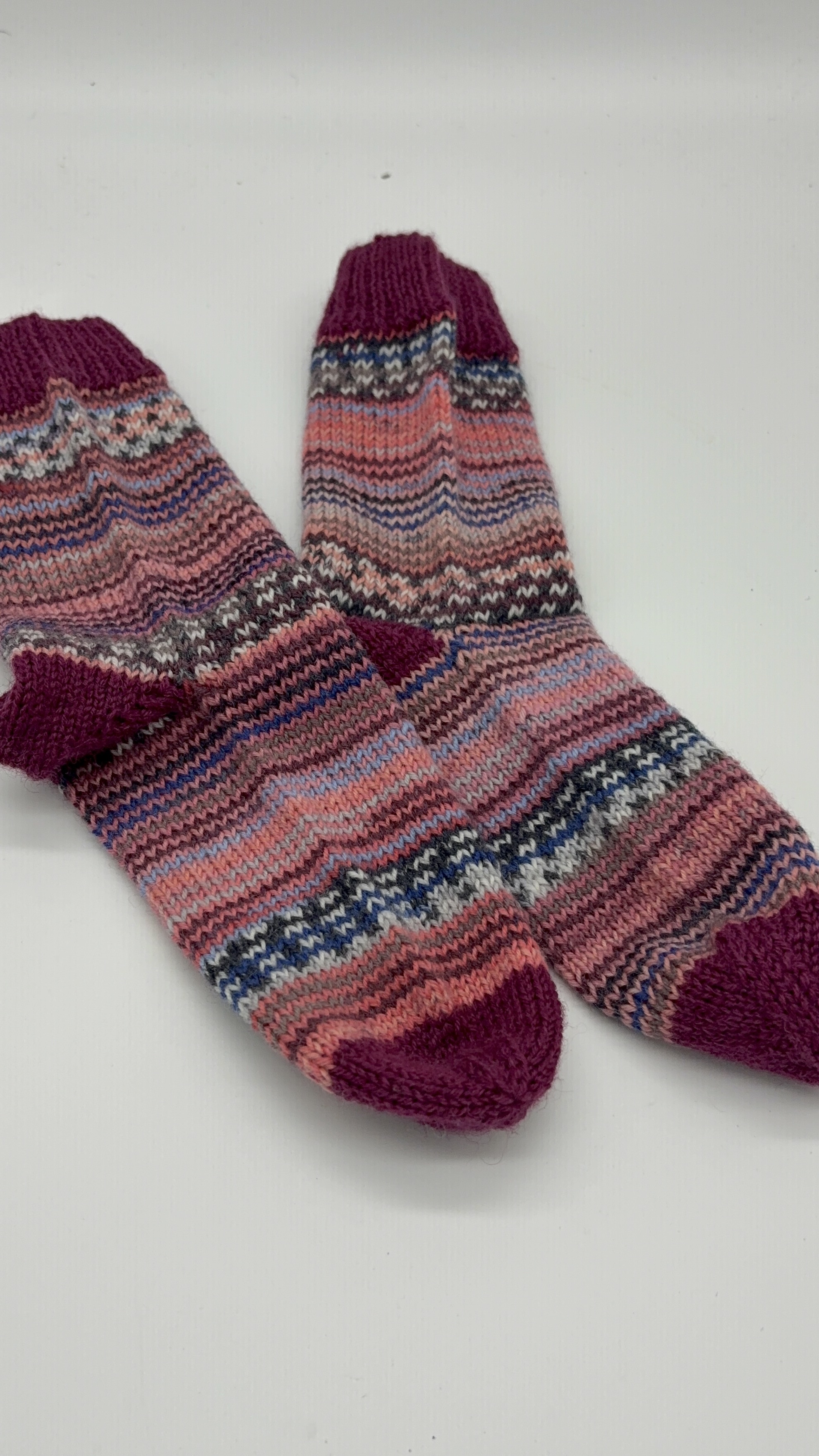 handgestrickte Socken Gr. 30-32 weinrot/rosa