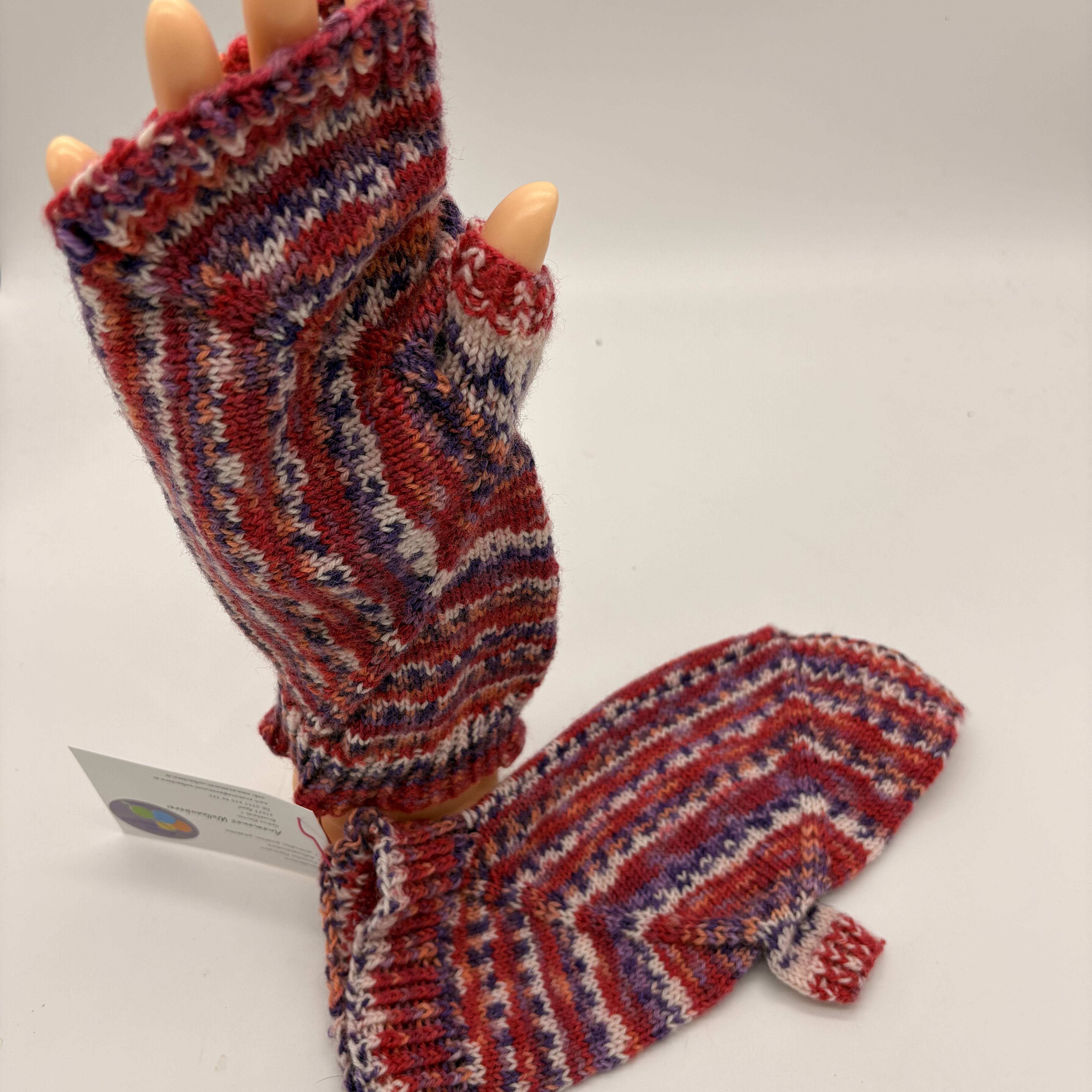 handgestrickte Stulpen in Windmühlenform.