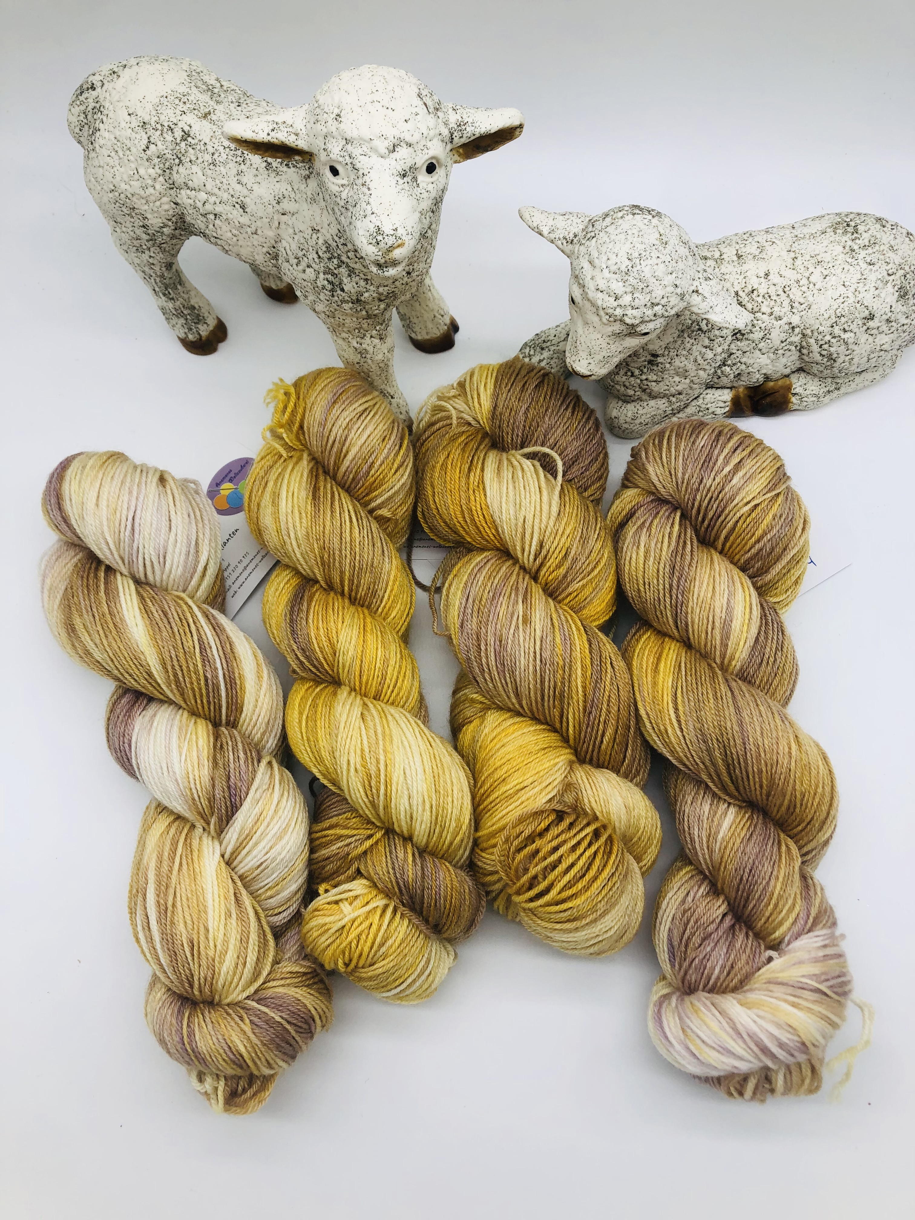 Merino mit Tencel 100g - handgefärbt gelb-braun-violett